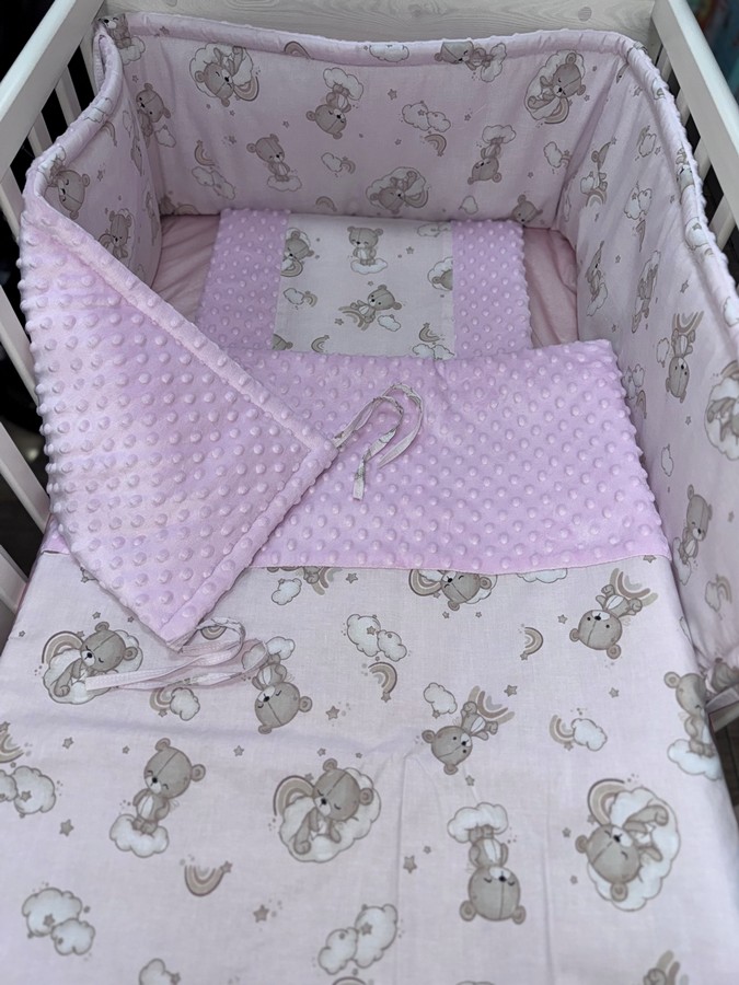 Puha, mosható, nem csomósodó gyermek ágynemű mintás pamut/minky anyagból. Újszülött kortól ajánljuk. Méreteiből adódóan bármilyen babaágyban jól használható.