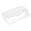 Újra felhasználható, öntapadós nedves törlőkendő adagoló. Praktikus és esztétikus adagoló, amely megkönnyíti a nedves törlőkendő mindennapi használatát otthon, autóban vagy utazás közben. Univerzális kialakításának és erős ragasztószalagjának köszönhetően könnyen rögzíthető nedves törlőkendő csomagolására vagy más hasonló termékekre, például nedves WC-papírra vagy pelenkázótáskákra.