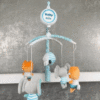 Elektromos zenélő körforgó kiságy fölé édes plüss figurákkal.