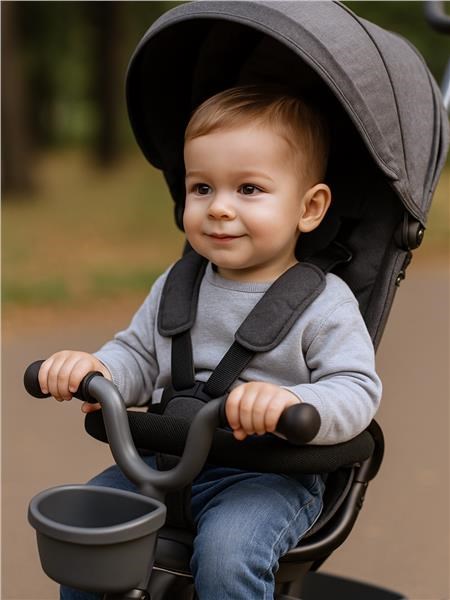 A Baby Mix 5 az 1-ben RELAX pedálos gyerek tricikli egy többfunkciós járgány, amely a többi GROW UP termékhez hasonlóan együtt nő a gyerekkel. A triciklit a gyermek és a szülő is kezelni tudja egy állítható tolókar segítségével. A tolókar, a napellenző és egyéb alkatrészek eltávolítása után a járgány tricikliként funkcionál. Modern felépítésű tricikli ergonomikus kialakítású, kényelmes üléssel, amely eltolható és 360 fokban elforgatható, így a gyerek a haladási irányban vagy azzal szemben is haladhat.