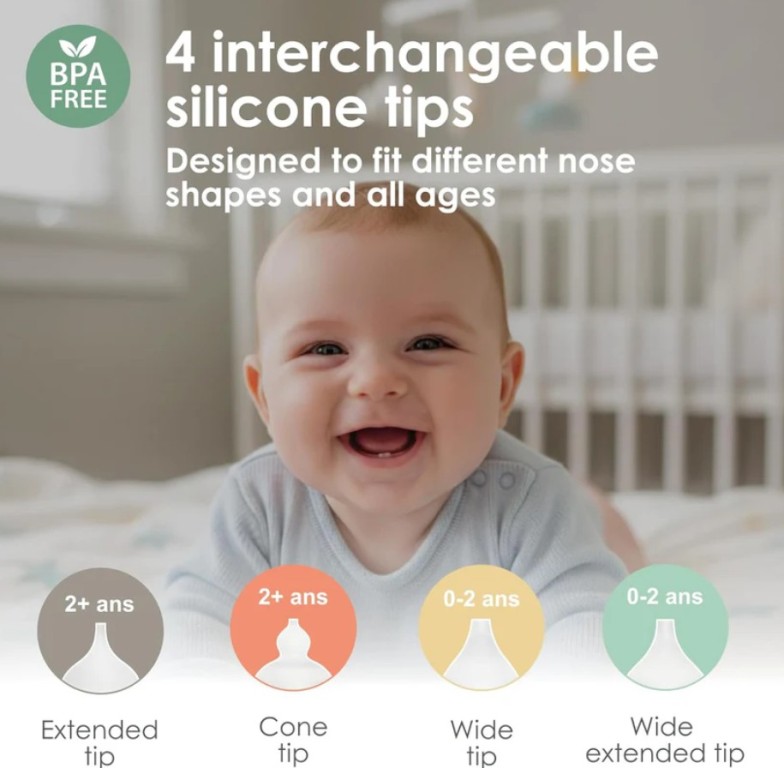 Szett tartalma: 1 db orrszívó készülék, 4 db orvosi szilikonból készült fej