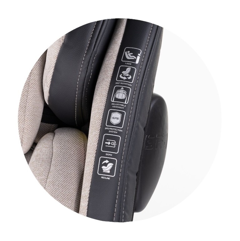 360 fokban forgatható, rendkívül jól, szinte vízszintesig dönthető autósülés, 40-150 cm-ig. Kiválóan párnázott autósülés, így már a legkisebbek is kényelmesen utazhatnak.