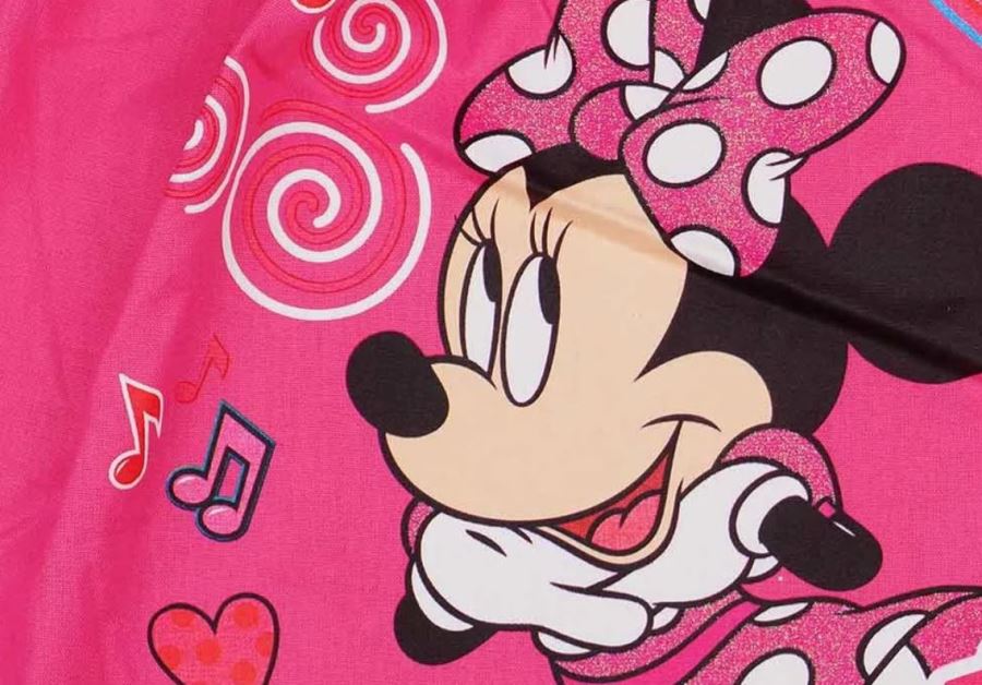 Minnie egérkés mintával nyomott, édes felirattal díszített termék.