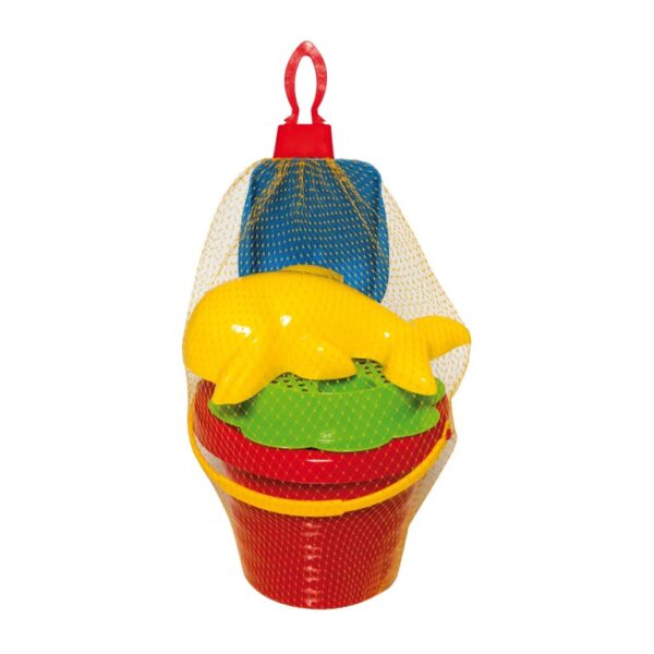 Komplett készlet, amely tartalmazza a homokozó vödröt, a szitát mely segít megszűrni a homokot a nagyobb daraboktól, és a formázókat is.