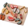 Készítse el gyermeke a saját gyümölcssalátáját! A színes gyümölcs felkelti a gyermek figyelmét és fejleszti a finommotoros készségeket. A gyerekek megismerkedhetnek a különböző gyümölcsfajtákkal, és a fa késsel ketté is vághatják azokat.