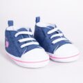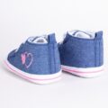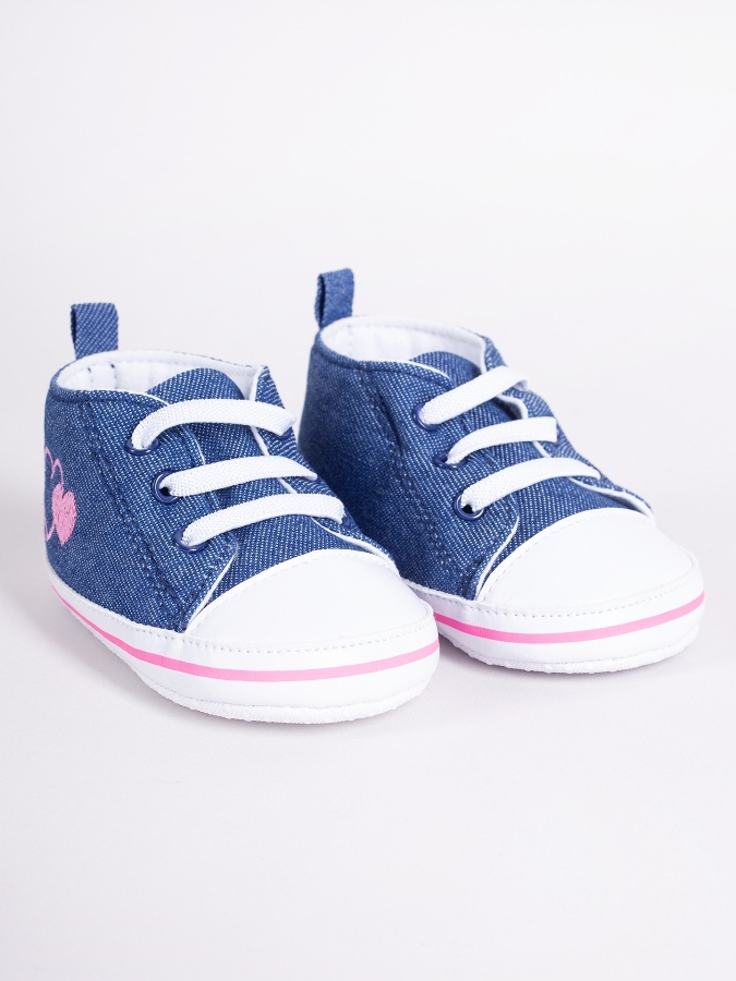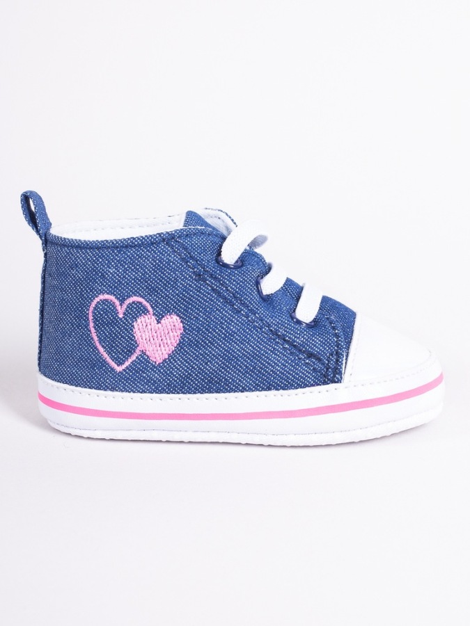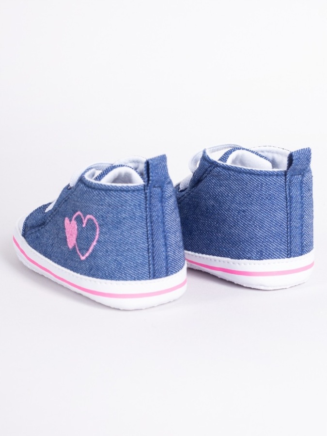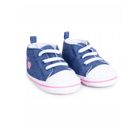 Gyönyörű cipő édes mintával díszítéssel. Tökéletesek mindennapi sétákhoz hidegebb napokon olyan babák számára, akik még nem tudnak járni. A gumiszalagos rögzítésnek köszönhetően gyorsan felhelyezhetők és a gyermek lábához igazíthatók.