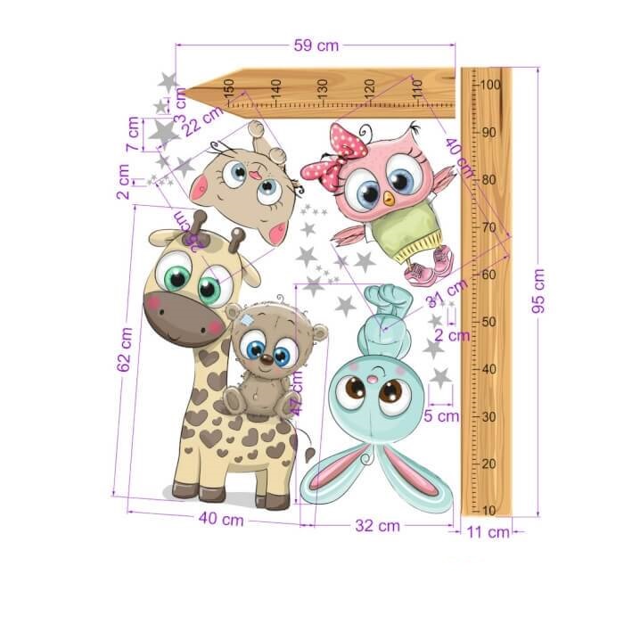 Hozzon létre egy színes és inspiráló gyerekszobát egyedi növekedésmérővel, aranyos állatokkal! Figyeld a gyermekeid növekedését!