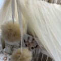 Tisztítás: A baldachin és pompom mosógépben nem mosható! Csak kézzel tisztítható, 30 °C-on, klórmentes mosószerrel.