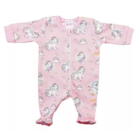 Azonnal beleszeretsz ebbe a cukin nyomott unikornisos rugdalózóba, mely tökéletes választás a kis pasik számára. A rózsaszín színű, 100% pamutanyagból készült darab végig cipzáras, ami megkönnyíti a peluscserét és az öltözködést, így a mindennapokban is praktikus viselet.