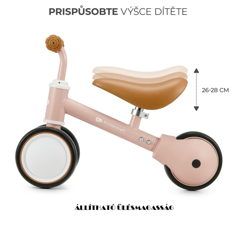 - A CUTIE mini kerékpár alkalmazkodik a gyermek igényeihez. Ez lehetővé teszi, hogy az ülés 26-28 cm között állítható legyen.