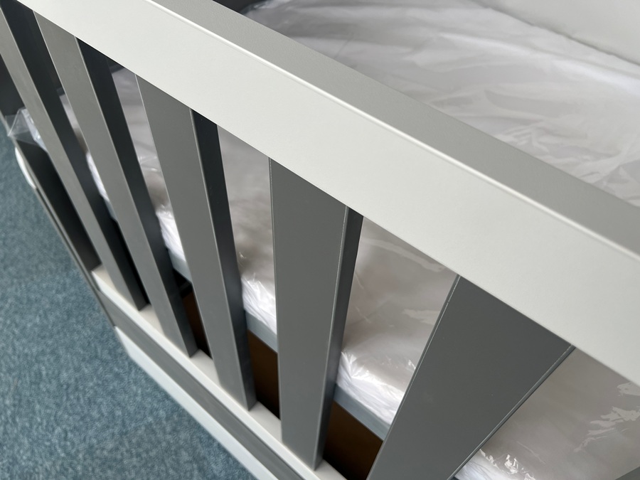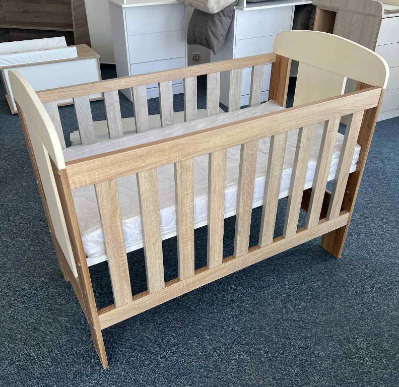 Anyaga: Laminált bútorlap és bababarát anyaggal felületkezelt fenyőből készült fekvőrácsok, valamint bútorlapból készült színazonos oldalrácsok. Az oldalrácsok a modernebb széles kivitelezésű oldalráccsal készülnek. Lásd a galériában szereplő képeken!