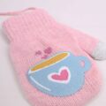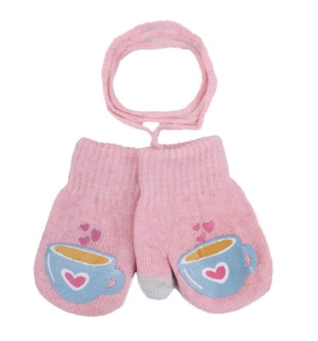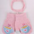 Praktikus, lányos kesztyű mintával. Dupla rétegű. Remekül mutatnak a kézen. A két kesztyű húzózsinórral van összekötve, így könnyen használható. Ez megakadályozza, hogy a kesztyű elvesszen a melegebb ruházat alatt. Mindkét hüvelykujj hegyére érintőképernyővel kompatibilis anyag van varrva.