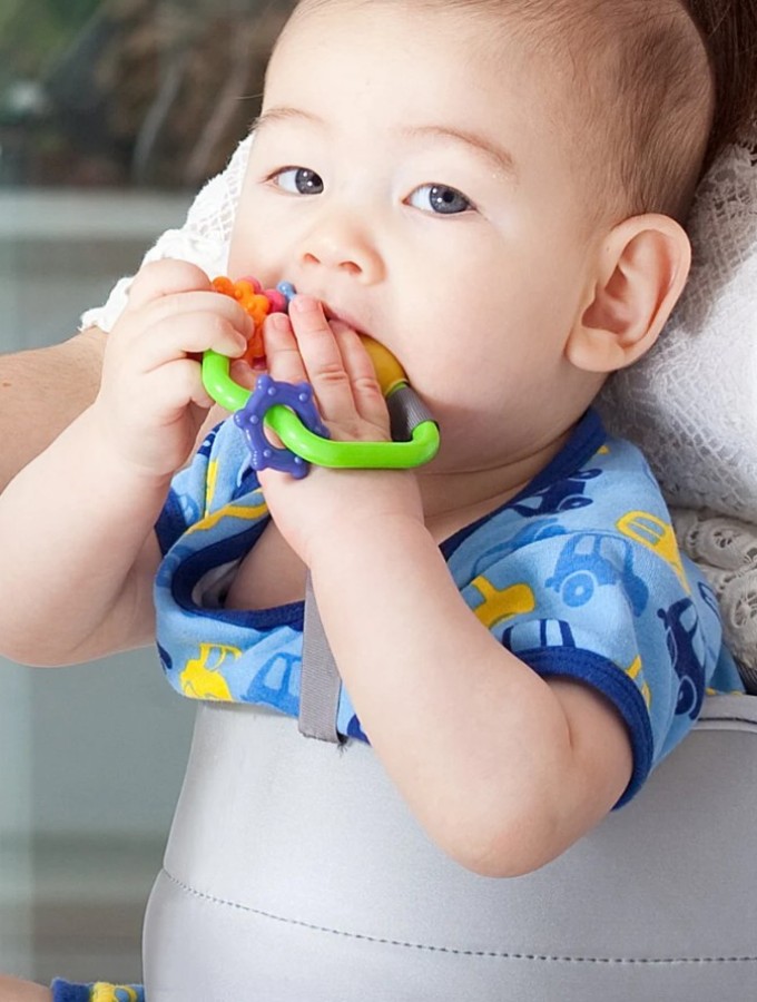 A terméken található egy pánt melyhez a gyermek rágókáit stb. lehet rögzíteni. A heveder elejének belső felén, alul, található egy kis tároló zseb, melyből egy „védő/letörölhető” anyag húzható ki. Ennek segítségével megóvhatja gyermeke ruháját az étkezések alatt.