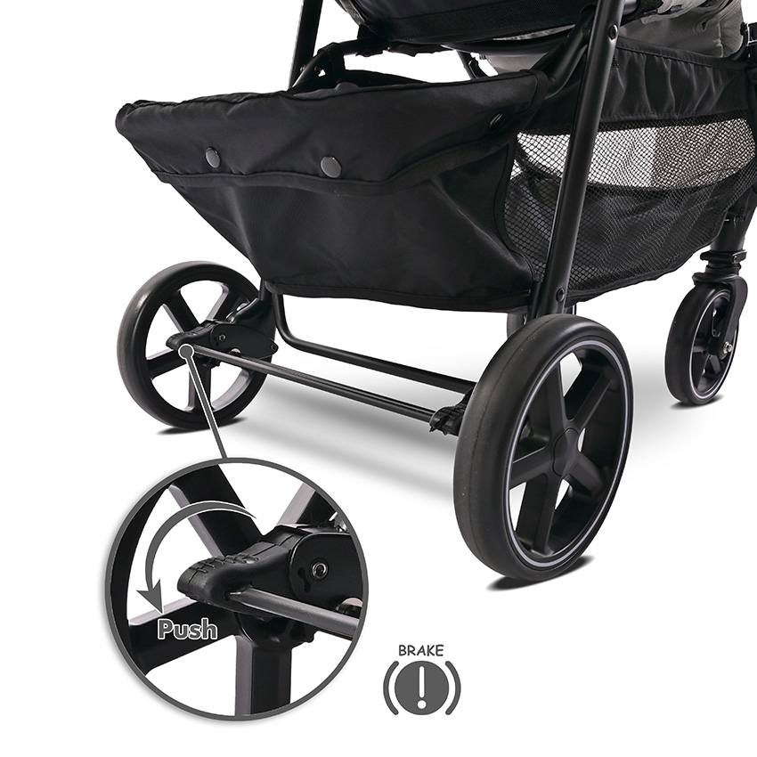 - első kerekei bolygósíthatóak, hátsó kerekei egyszerre, lábbal fékezhetőek