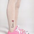 Pamut, átlátszatlan harisnyanadrág ezüst szállal és bájos mintával a szár alján, „LOVE” felirattal. Az ezüst szálnak köszönhetően gyönyörűen csillog. Puha, mégis tartós pamutból készült, így garantáltan kényelmes.