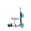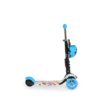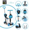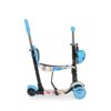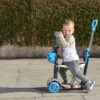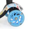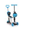 Ez a Moni Lollipop kék gyermek roller, ami három keréken gördül, tervezve a stabilitás és az egyensúly fenntartására a mozgás közben.