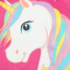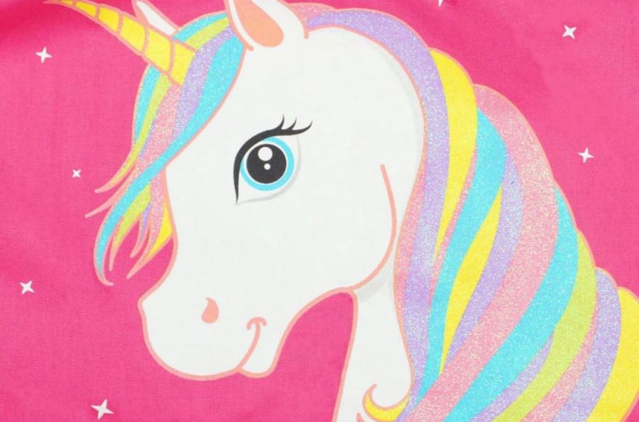 Unikornisos mintával nyomott, édes felirattal díszített termék.