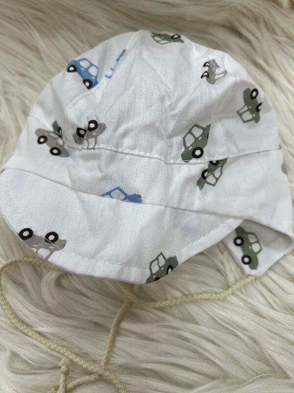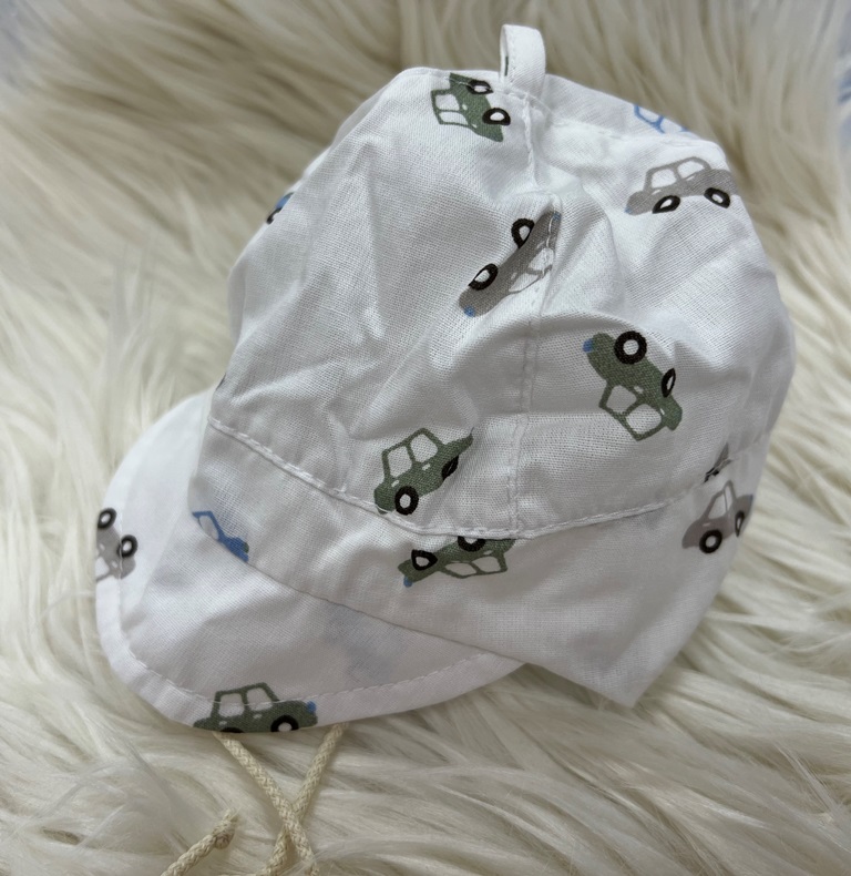 Pamutvászon kényelmes és lenge viseletet biztosító nyári baseball sapka. Megkötővel és fülvédő résszel rendelkezik, így gondoskodva arról, hogy a buksiról ne tudja levenni a pici.