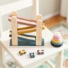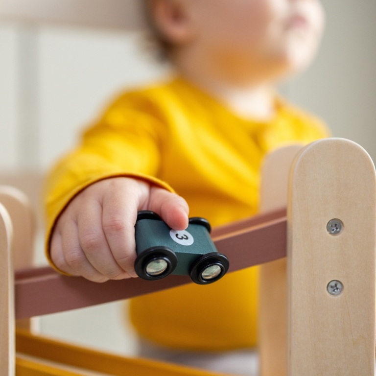 A MILKY WAY fa autóverseny-pálya többszintű kaland a kis autóversenyzés rajongóknak. A készlet 3 szintből és 3 kisautóból áll, amelyek fentről lefelé haladva biztosítanak látványos szórakozást. Az autók önálló versenyzésre is használhatók, a lágy, visszafogott színekben pompázó minimalista pálya kialakítása pedig tökéletesen illik a gyerekszobába.