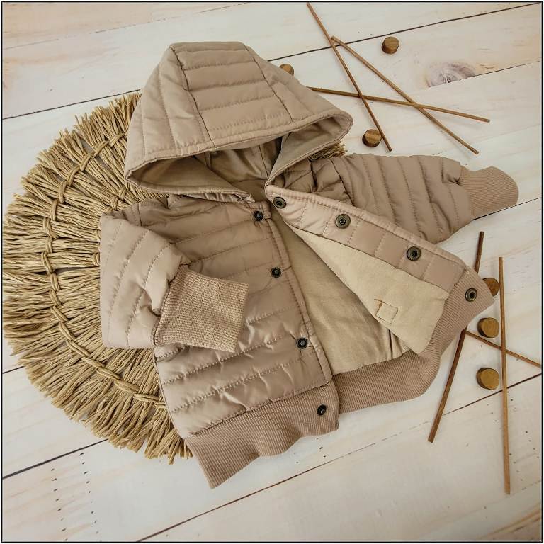 Egy kisbaba igényeit a hűvös átmeneti időkben kielégítő kabát, melyet a steppelt minta tesz igazán különlegessé. Gyönyörű, divatos, steppelt – őszi/tavaszi kabát babáknak, gyerekeknek kapucnival.