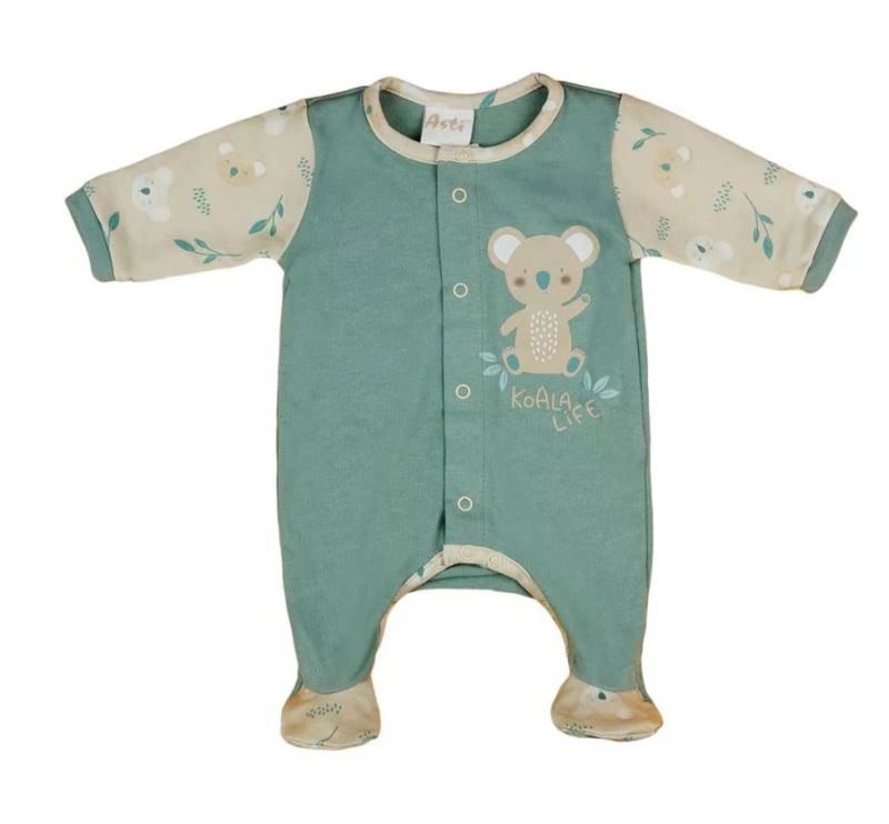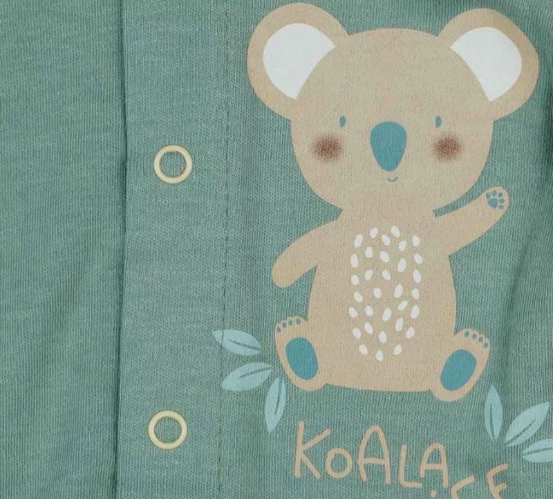Koala mintás, elöl patentos hosszú ujjú baba rugdalózó. A ruha fazonnak köszönhetően könnyedén a babára adható darab. A pelenkacsere, öltözés és vetkőztetés sem okoz majd különösebb problémát ennek köszönhetően.