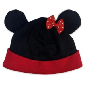 • Minnie pamut átmeneti sapka fülekkel, édes masnival – Fekete/piros