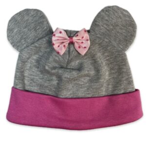• Minnie pamut átmeneti sapka fülekkel, édes masnival – Rózsaszín/szürke