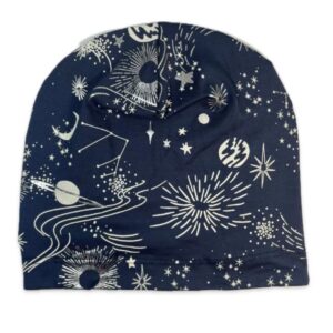 • Pamut átmeneti gyermek sapka – Sötétkék világűr (50 cm fejkörfogat)