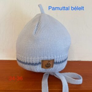 • Vastag kötött baba sapka pamut béléssel – Kék hajó kék csíkkal (34-36 cm fejkörfogat)