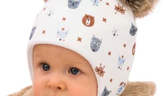 • Vastag kötött megkötős, fülvédős sapka pamut béléssel – Világosszürke macifej fülekkel (46-48 cm fejkörfogat)