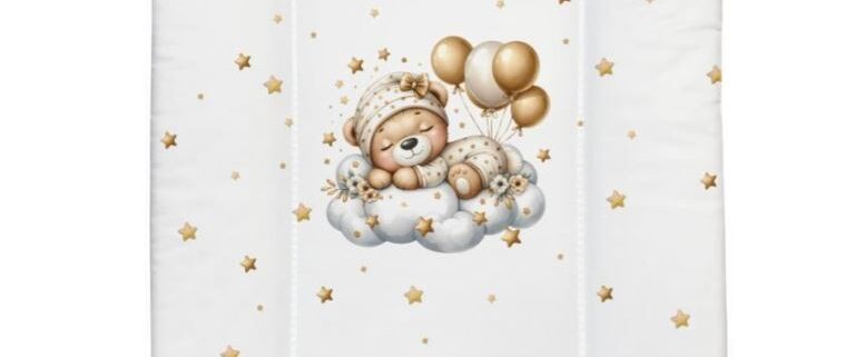 • Kis pufi puha softy pelenkázó lap 50 x 70 cm – Felhős maci arany